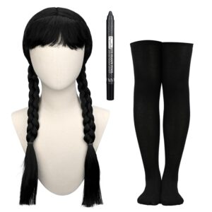 【Complete Classic Characters Accessories Set】you will receive 1 piece of black school dress,a piece of gothic wig,a piece of eyeshadow pencil and a pair of black knee socks,ideal combination for your Halloween family costume, you can wear them on various party and it will make you eye catching in the crowd