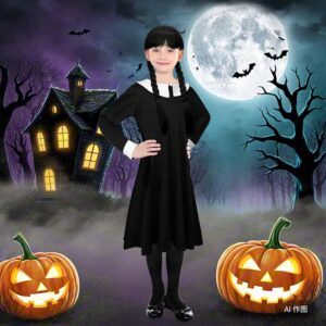 This costume is inspired by favorite characters of movies on Halloween that makes it an easy costume to recognize and enjoy. The laid-off black dress, the soft wig, and the socks are combined to form an all-encompassing and refined appearance– no additional shopping or last-minute home-made work is needed. Parents would enjoy the hassle free easy way, and children would enjoy being able to become their favorite spooky, gothic, or movie character easily.