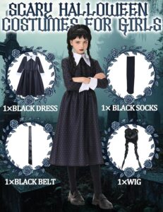 - 🎃 Complete 4-Piece Set: This set is a black dress, wig, and socks, and other matching accessories, everything required to create a complete Halloween transformation.